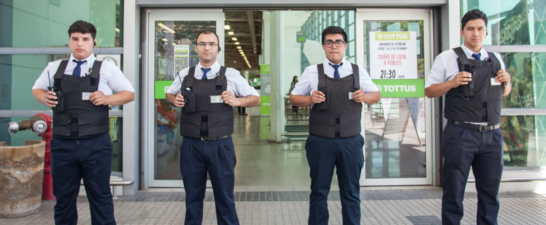 Contamos con una planta cercana a los +1200 guardias de seguridad, los cuales atienden a nuestros clientes distribuidos entre Arica y Puerto Montt, especialistas en seguridad de grandes instalaciones, algunas de las cuales son Supermercados, grandes tiendas, Mall, entre otros.